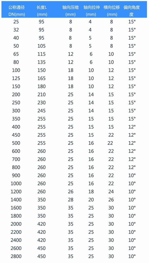 骨架層——丁基橡膠+氯丁橡膠+聚酯簾布;骨架材料選用強力高,斷裂強度≥190cN/tex,斷裂應力≥2.76GPa,彈性模量≥44N/tex,斷裂伸長率≥4%聚酯簾布。使內外層與骨架層的緊密結合,經過硫化成為一體,解決了橡膠接頭的熱伸脹及整體附著強度和耐壓性能,保證足夠的承受其真空度和水錘沖擊能力。